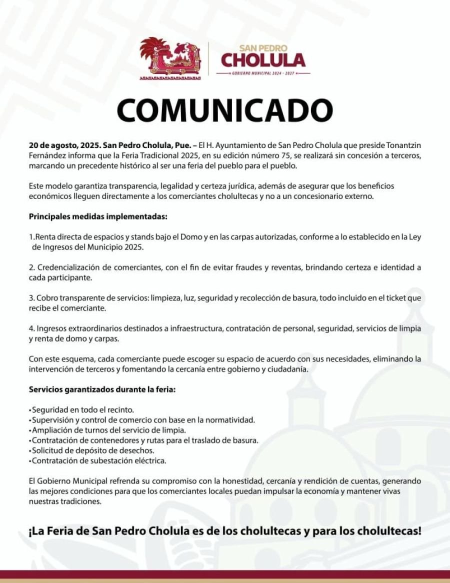 Este modelo garantiza transparencia, legalidad y certeza jurídica, además de asegurar que los beneficios económicos lleguen directamente a los comerciantes cholultecas y no a un concesionario externo.