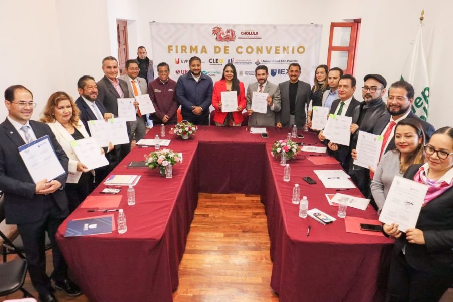 - El Gobierno de San Pedro Cholula firma 11 convenios para que estudiantes realicen su servicio social y prácticas profesionales.